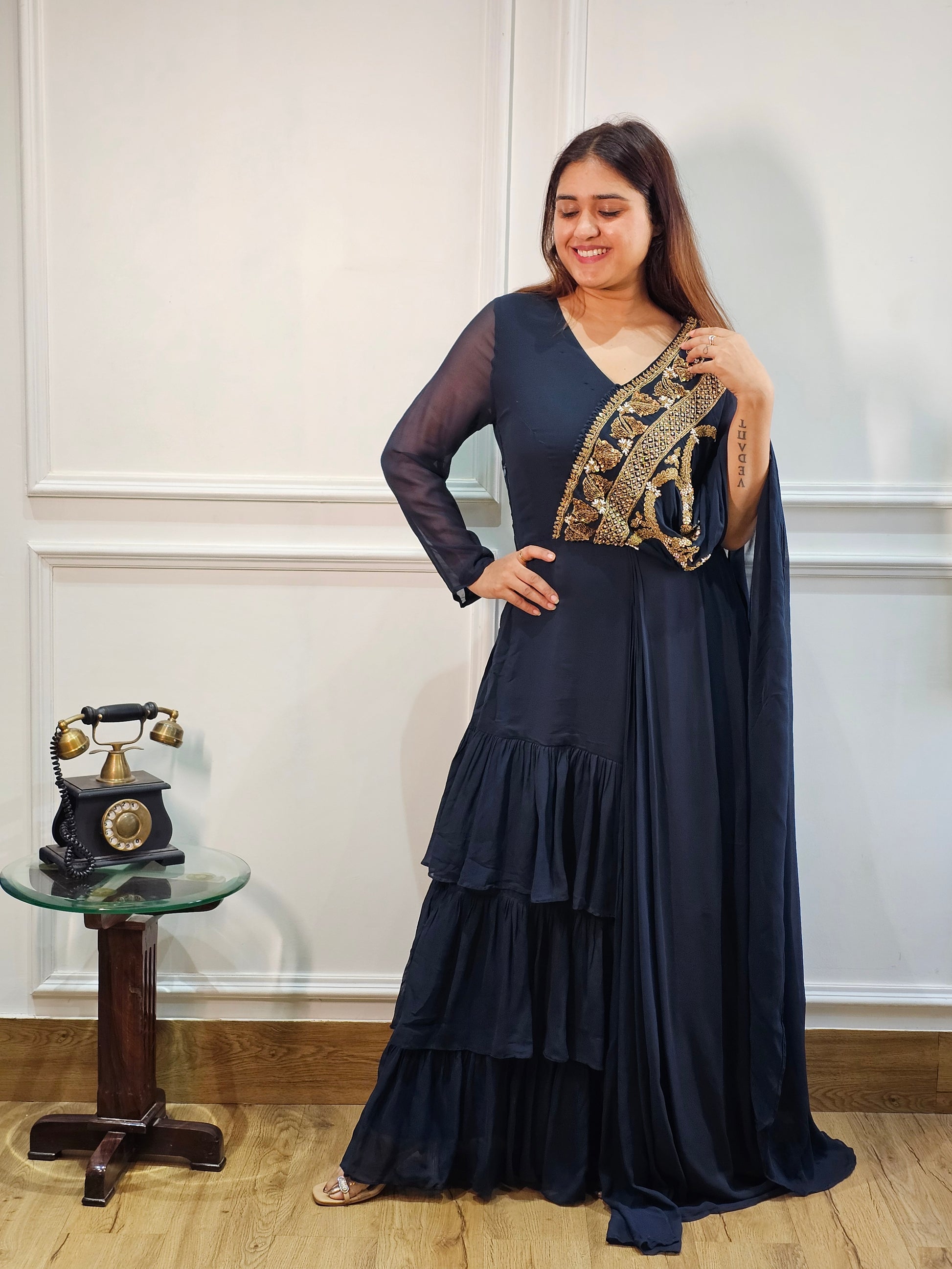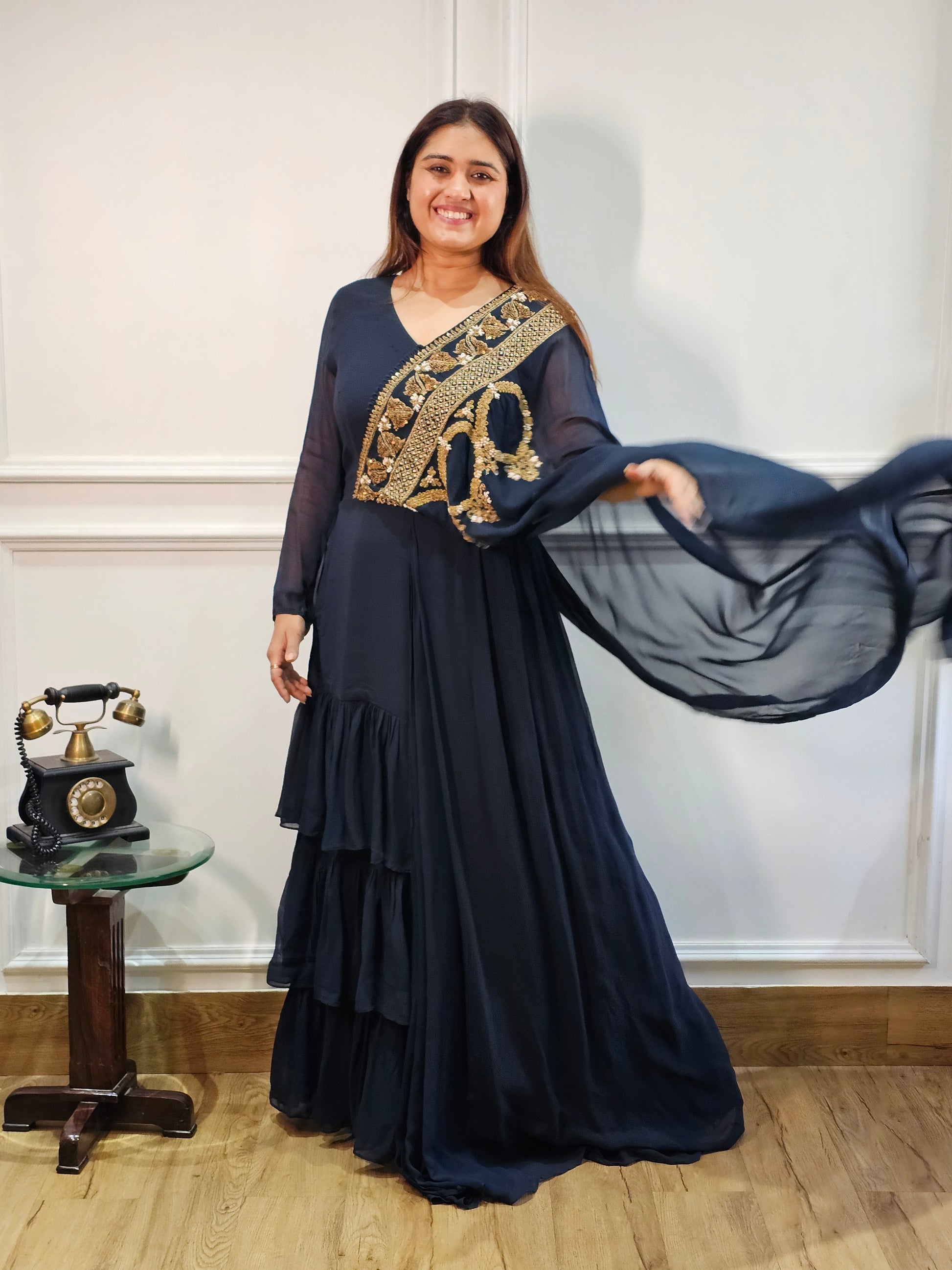 Product Description: A soft and elegant pure georgette onepiece featuring a flowy silhouette and modern festive appeal. Lightweight, stylish, and perfect for casual and special occasions.