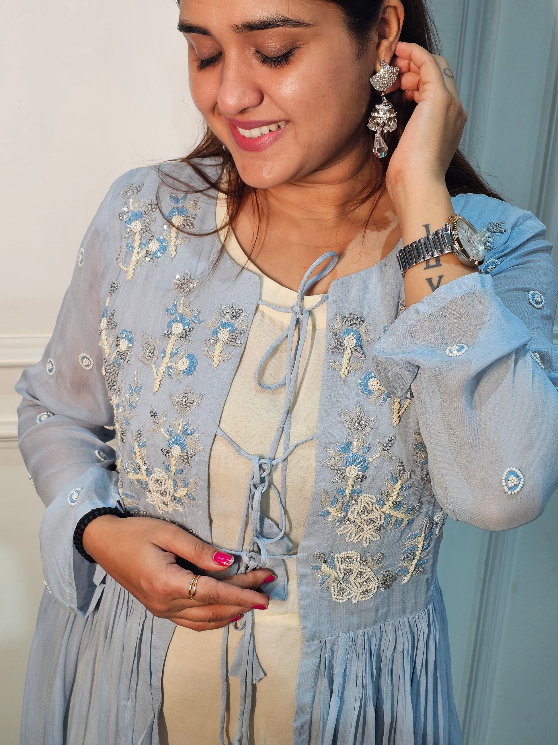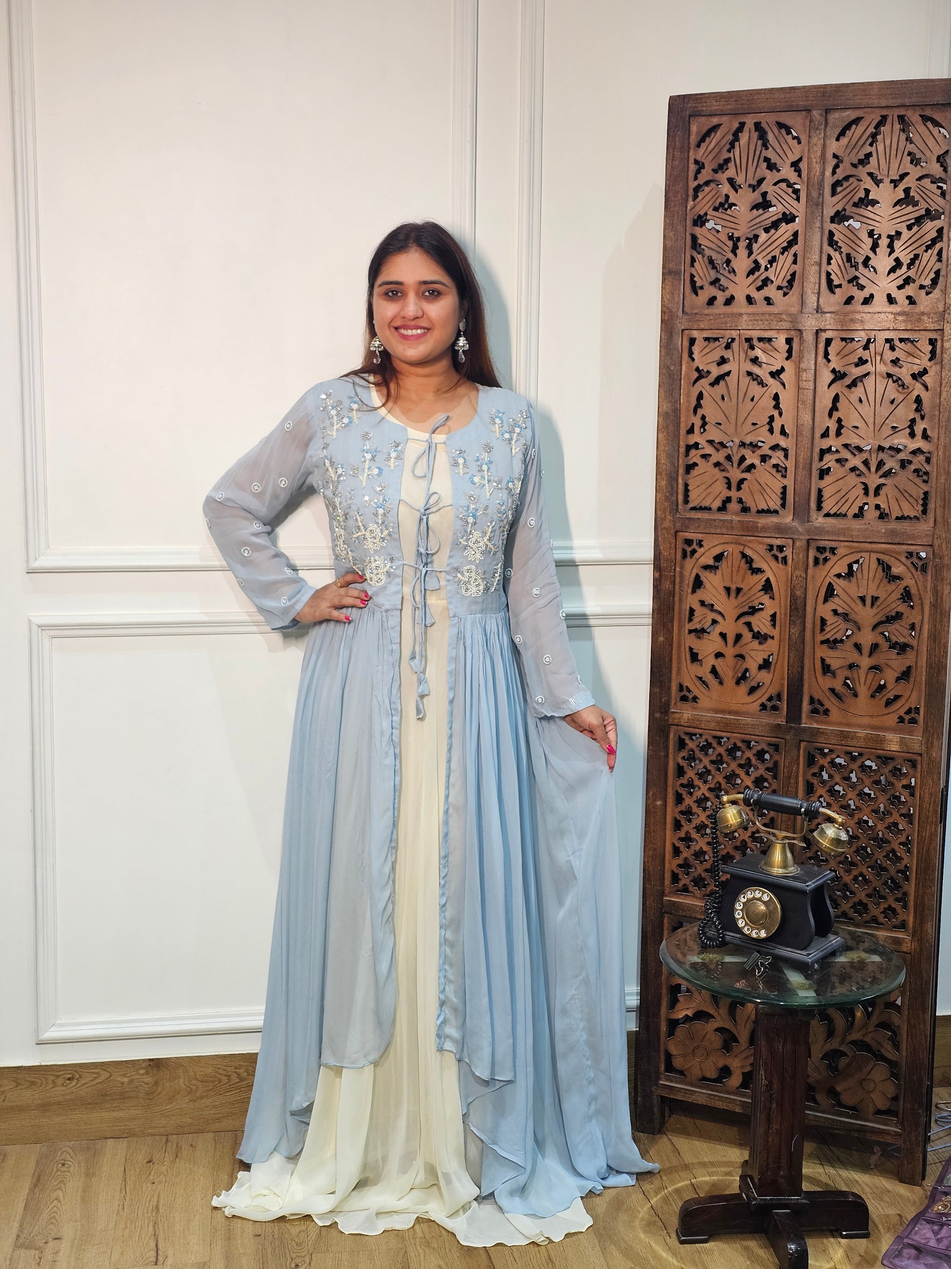 Product Description: A soft and flowy pure georgette onepiece designed for a graceful festive and casual look. Lightweight, elegant, and comfortable for all-day wear.