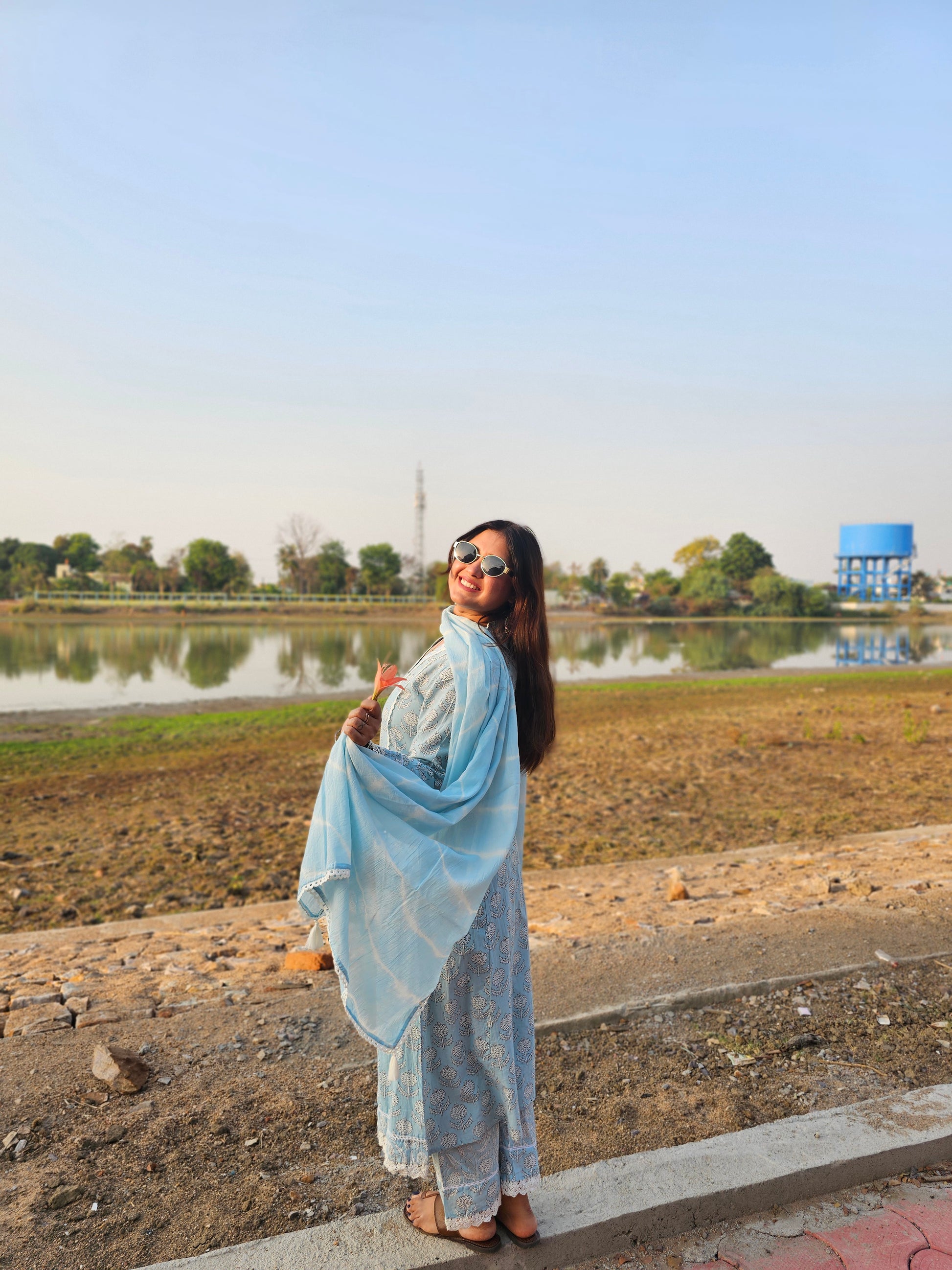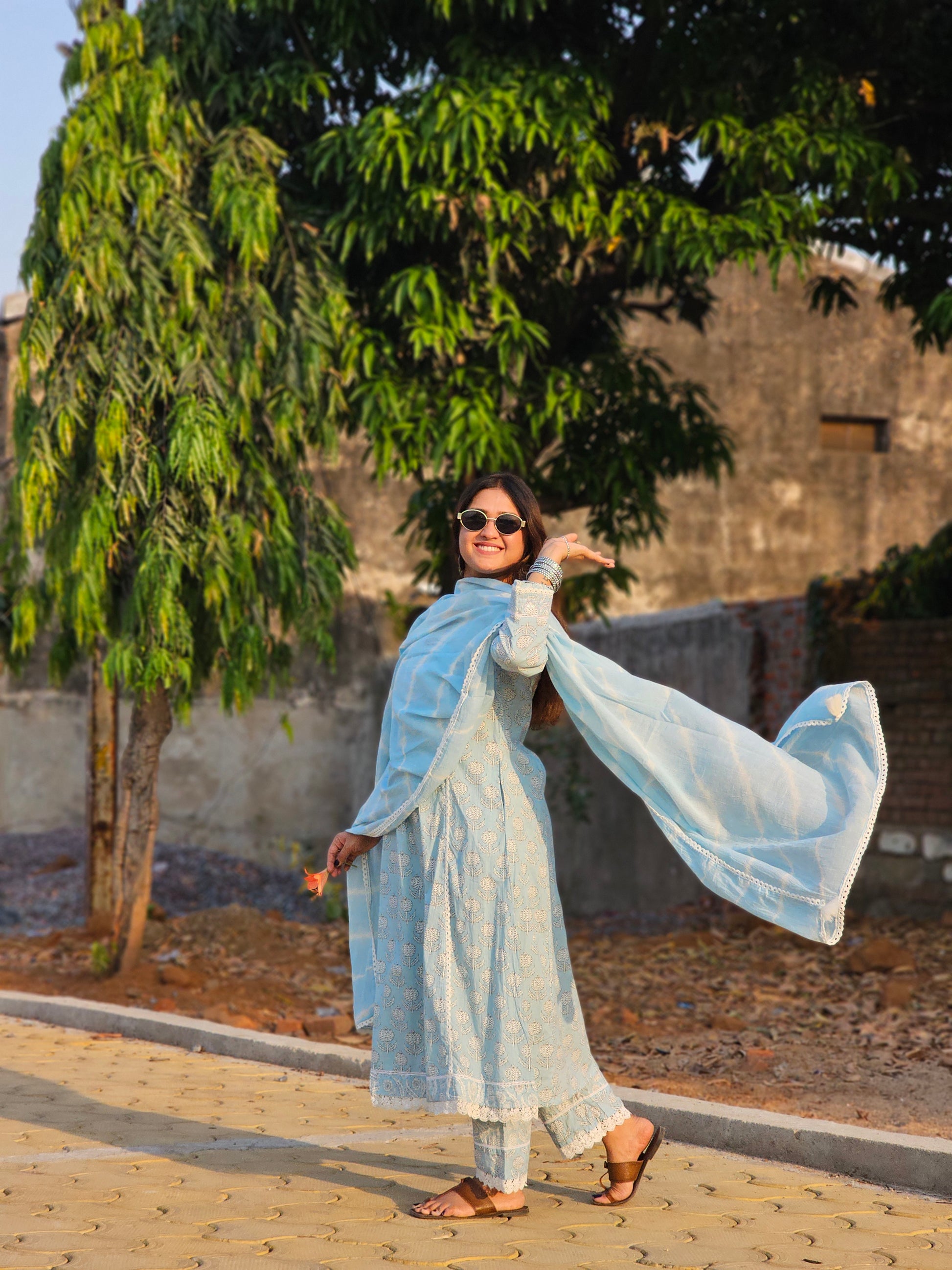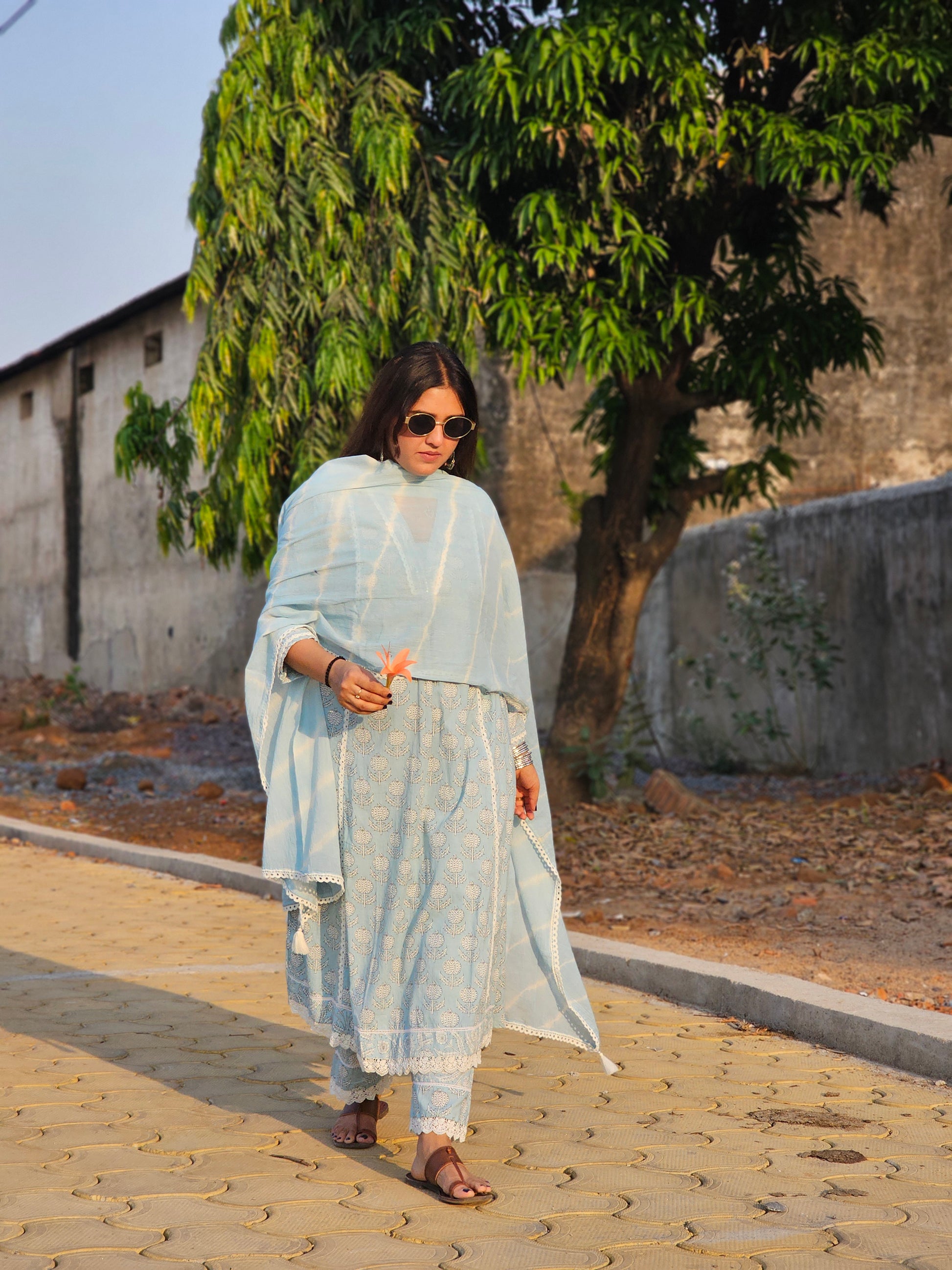 Pure cotton suit with lace detailing and tie and dye dupatta with beautiful and comfortable Printed pant