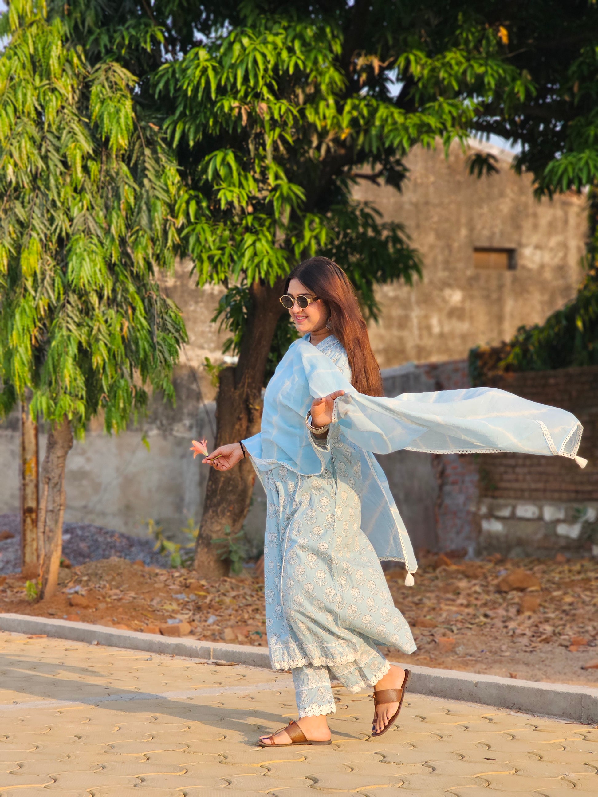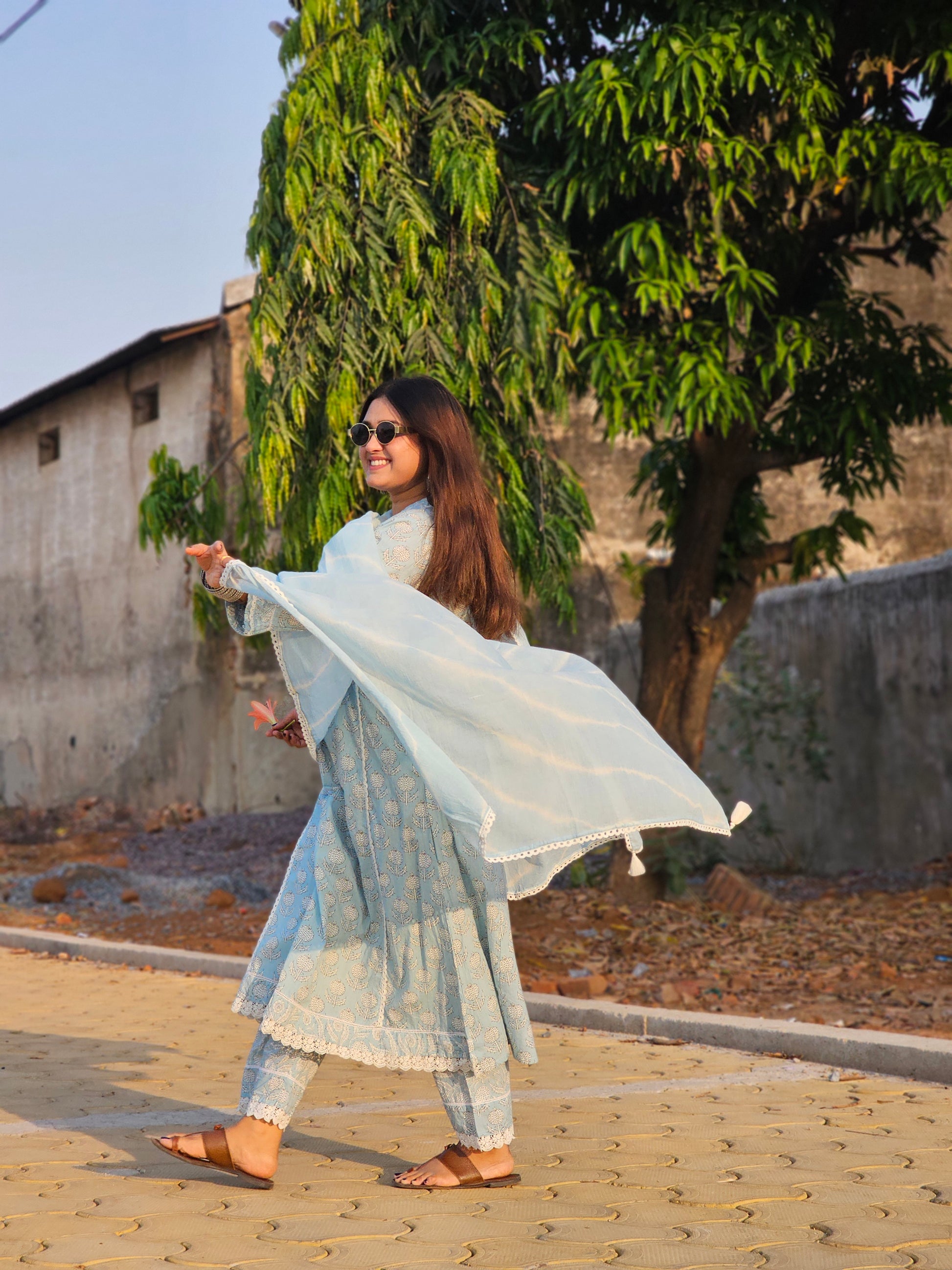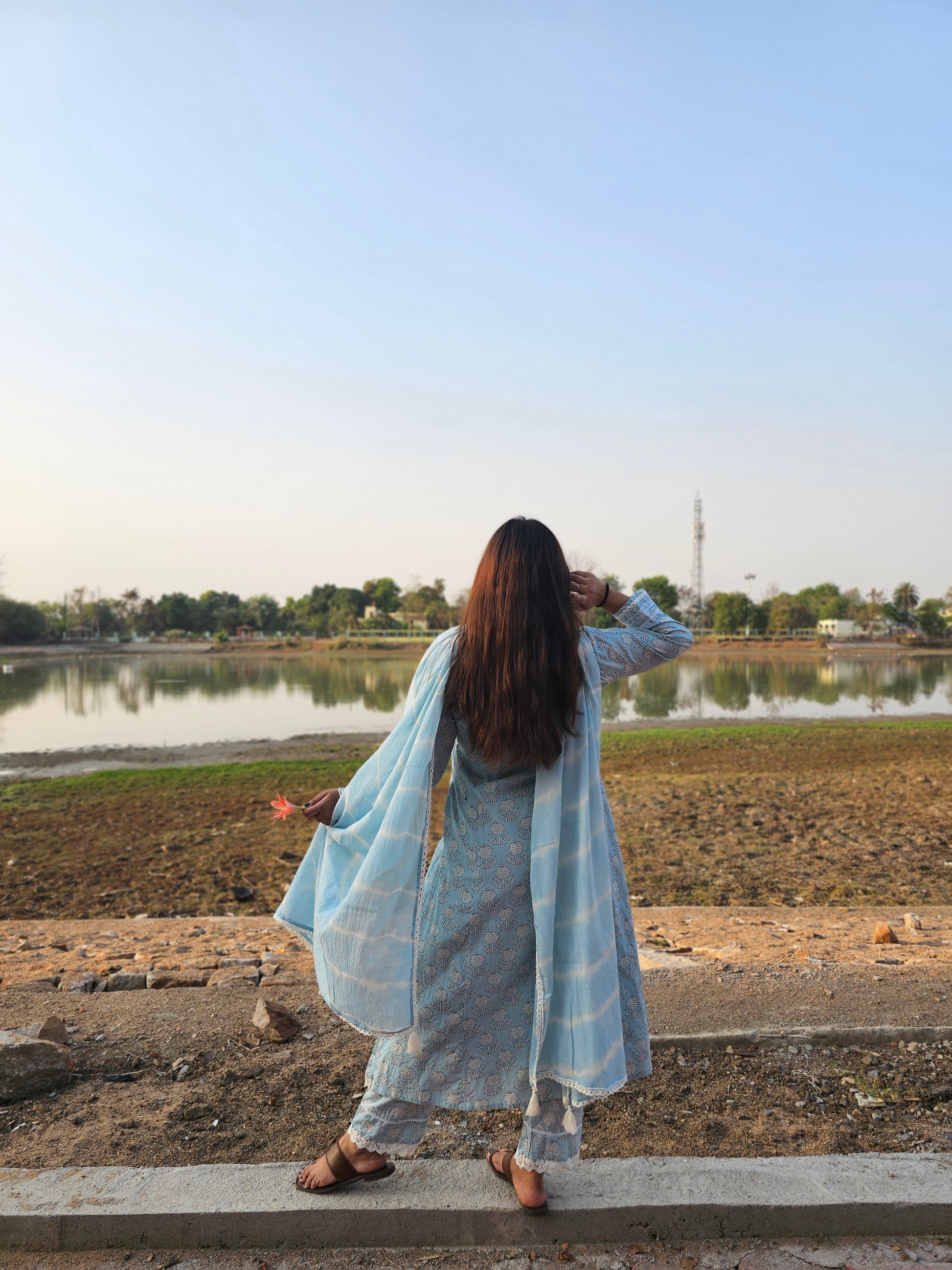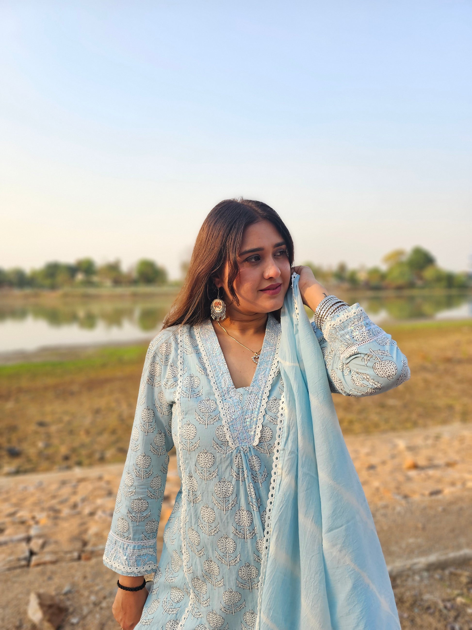 Pure cotton suit with lace detailing and tie and dye dupatta with beautiful and comfortable Printed pant