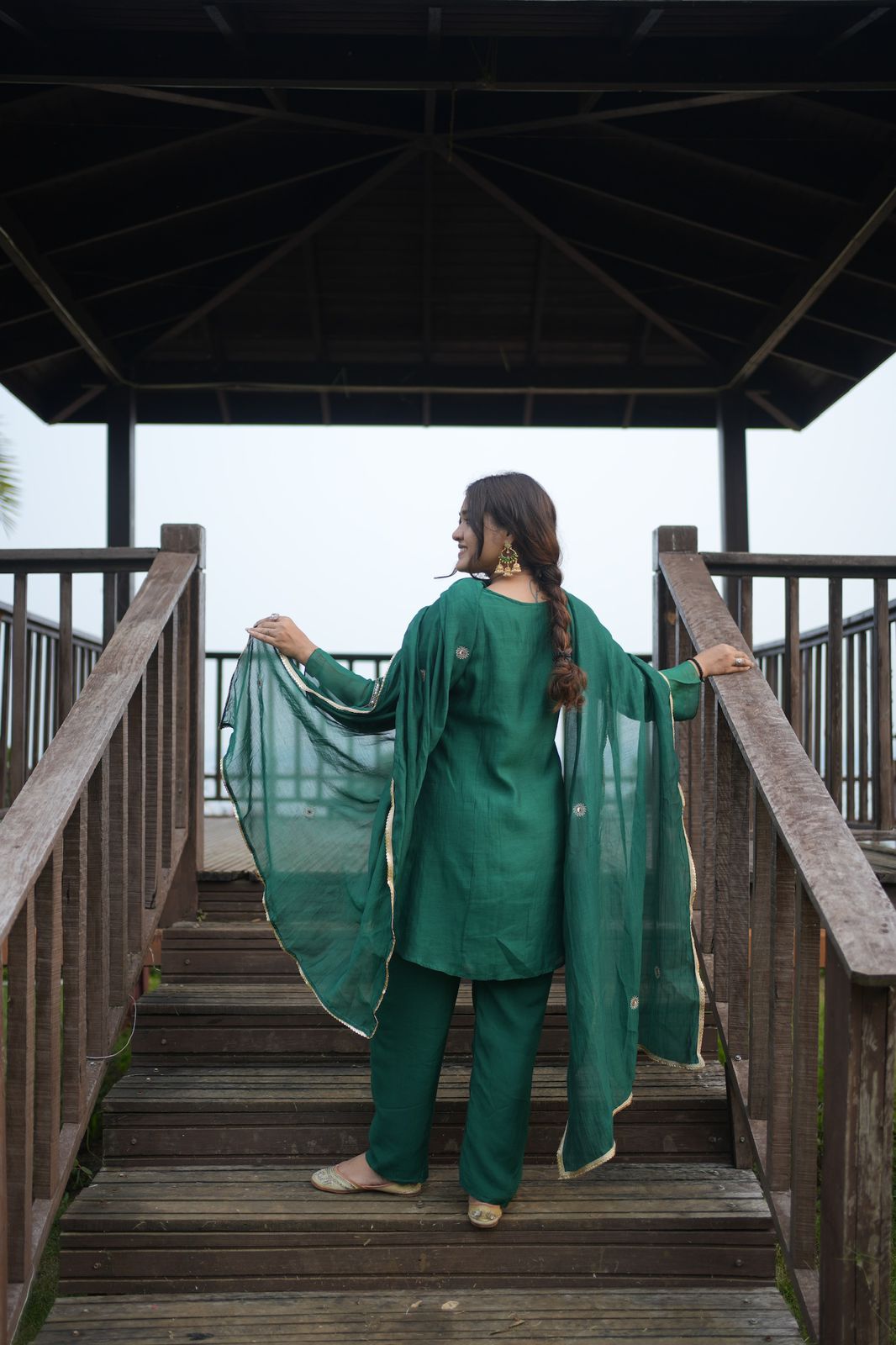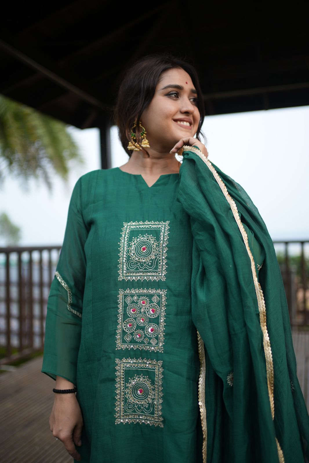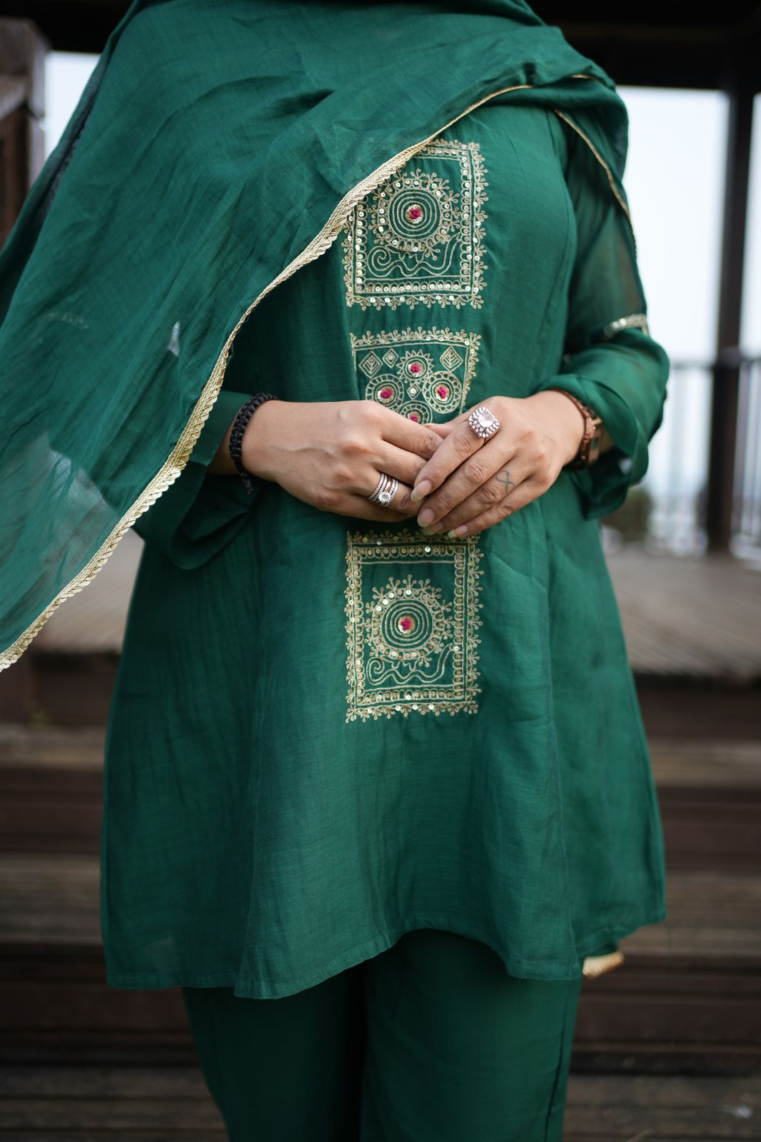 Pure mul chanderi suit with beautiful short kurta and antique work and classy dupatta