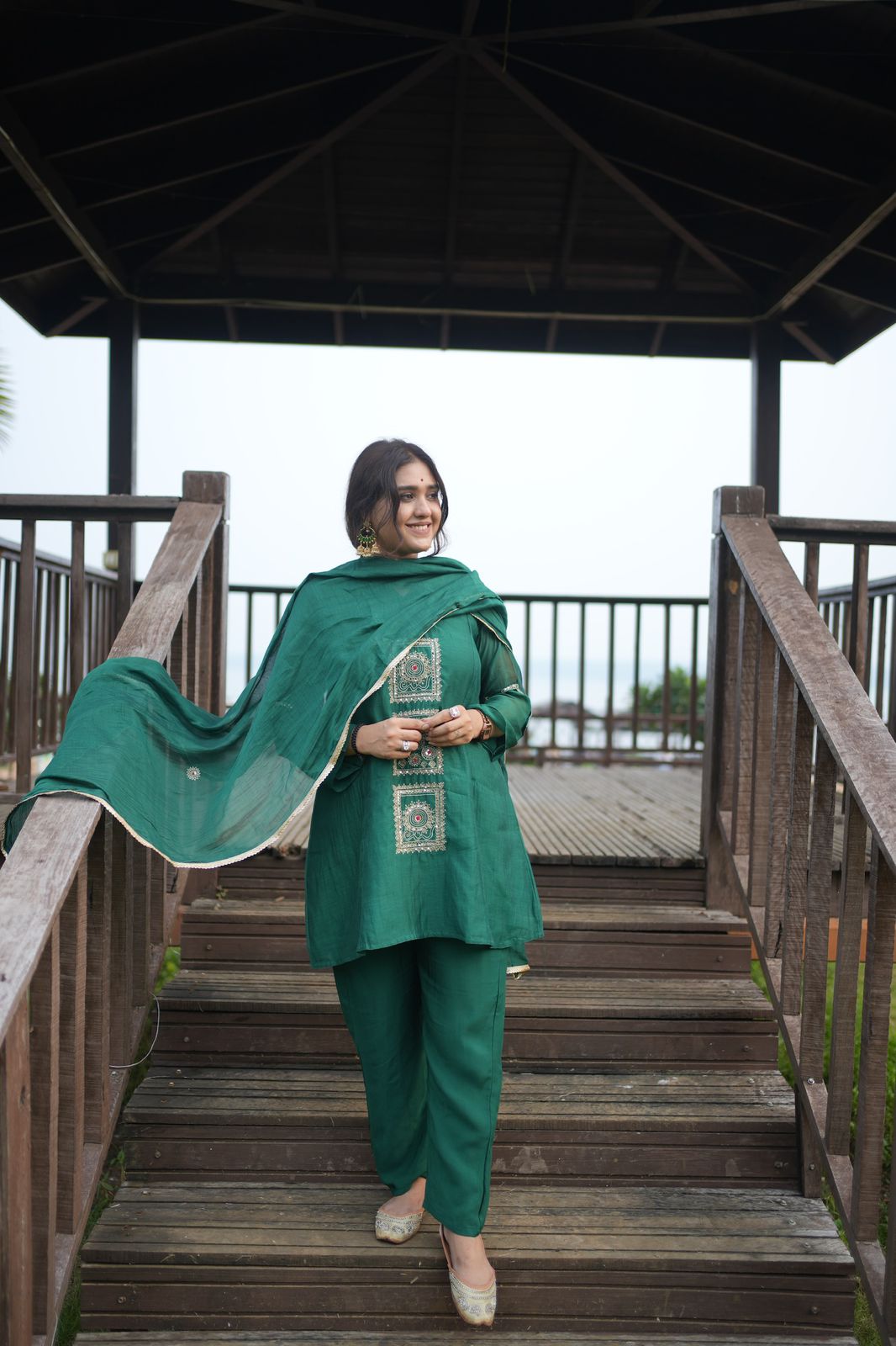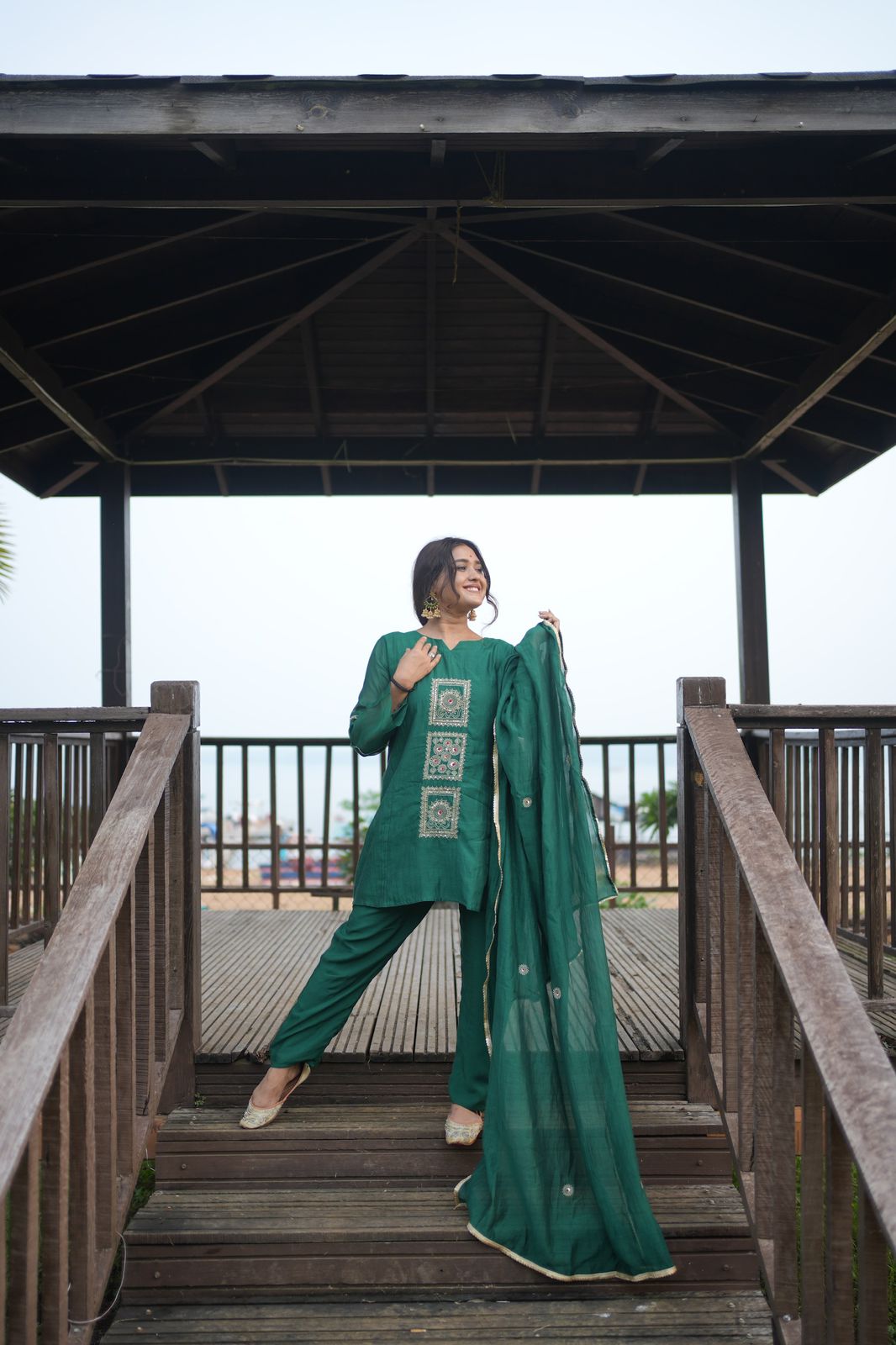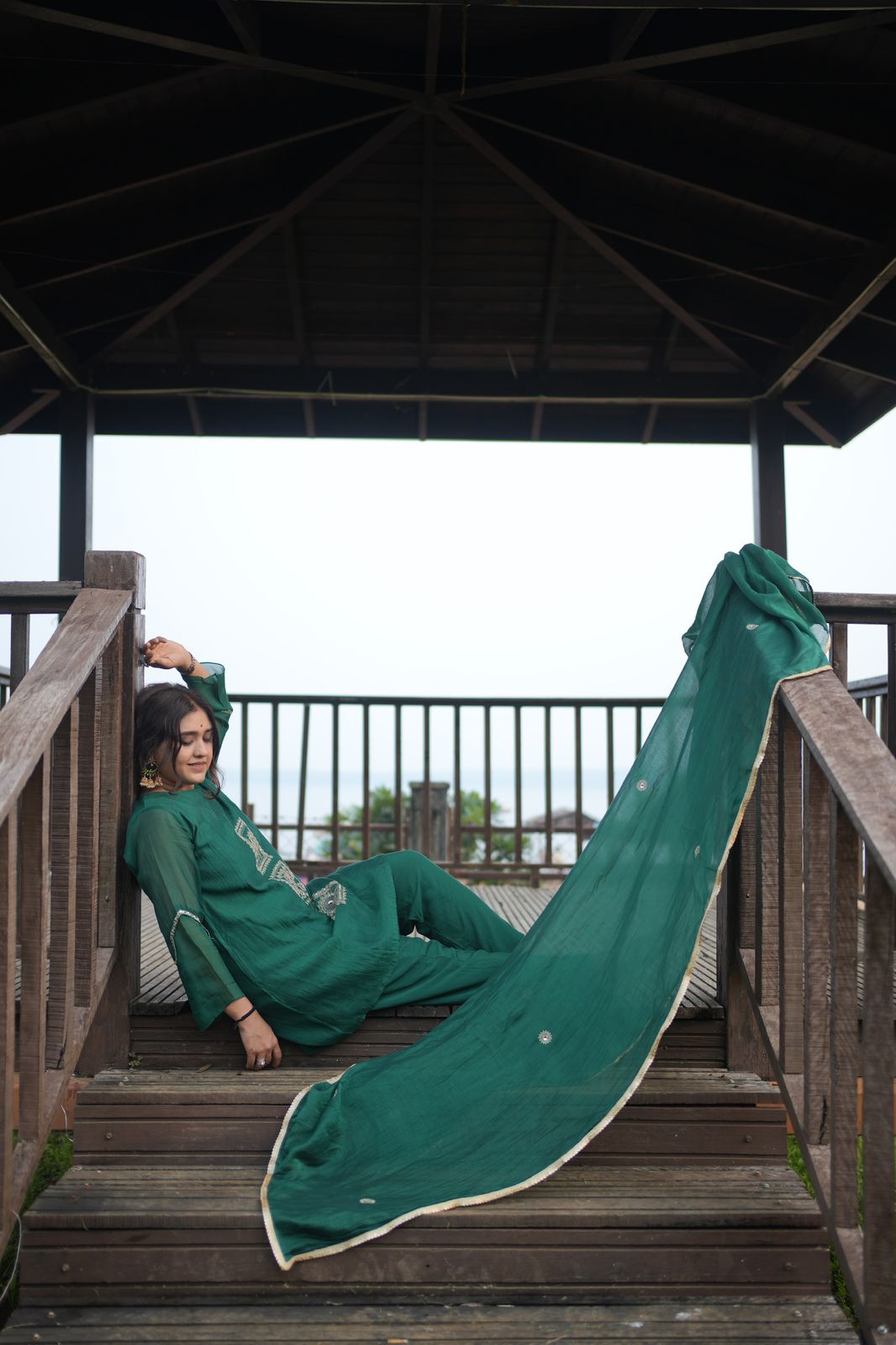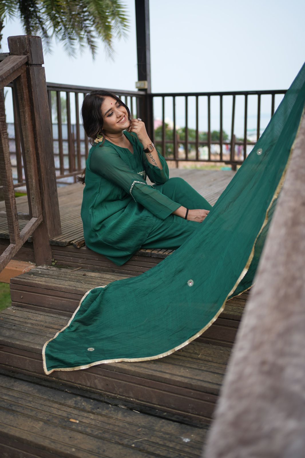 Pure mul chanderi suit with beautiful short kurta and antique work and classy dupatta