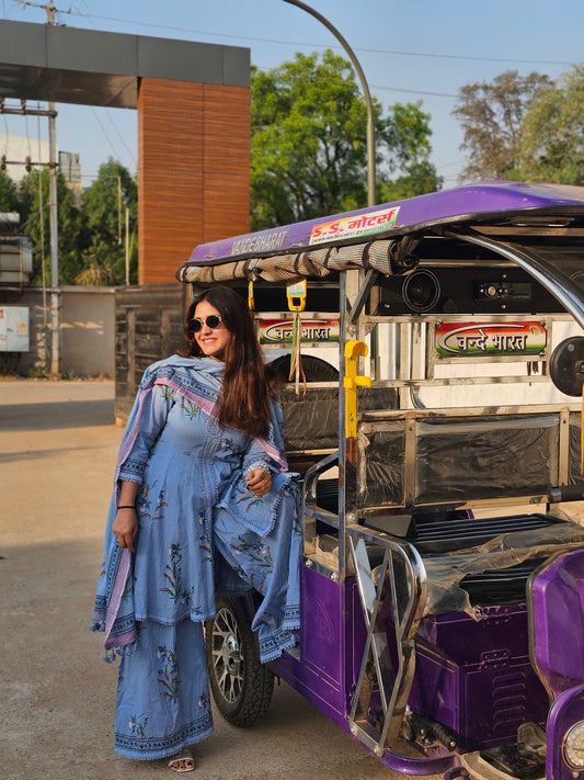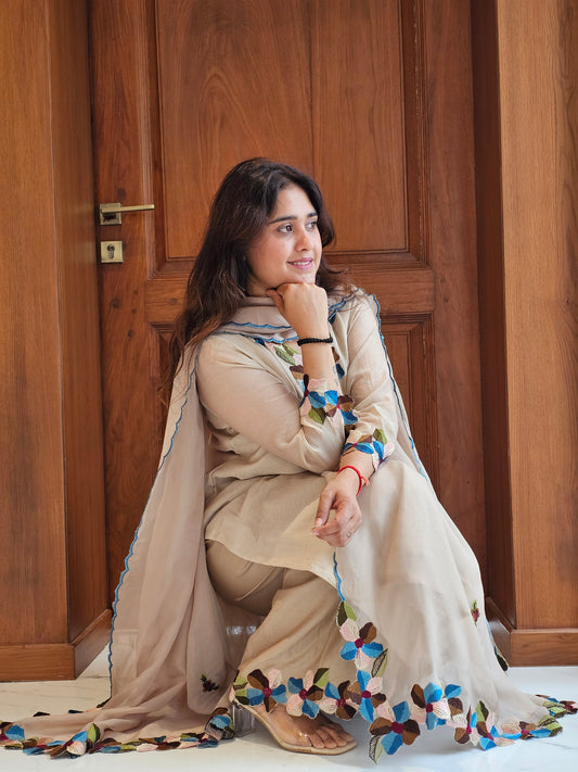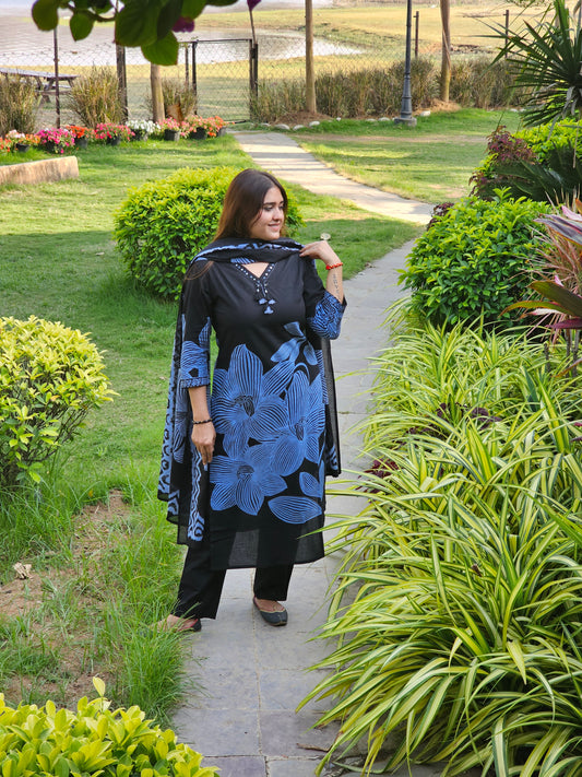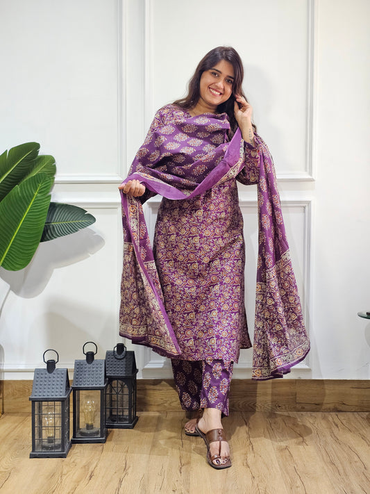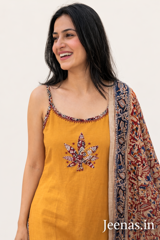 Jeenas pure cotton solid suit set with Doria dupatta.