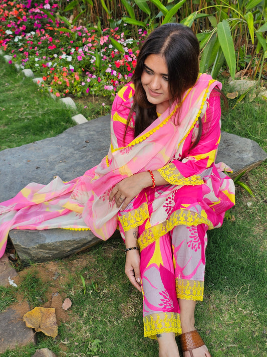 Jeenas pure muslin bandhani salwar suit set with pure organza dupatta