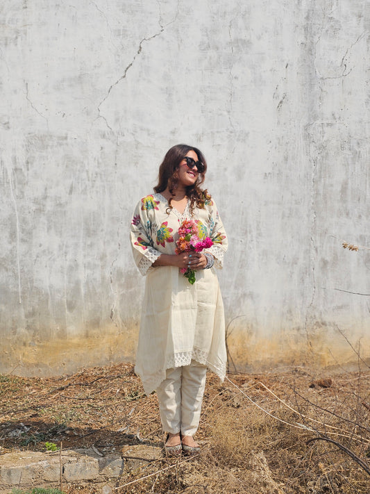30% OFFIvory painted kurta pant